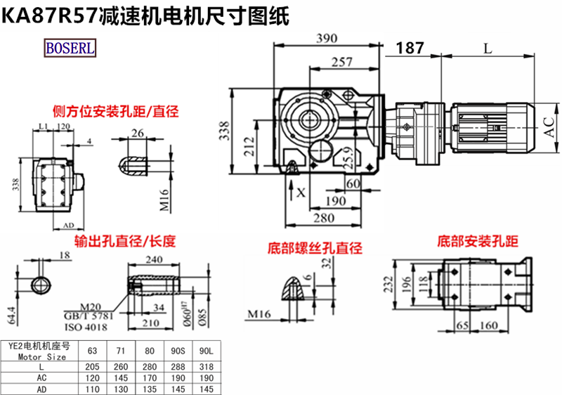 KA88R58DRN80M4_KA88R58DM90M4_KA88R58DVE63M4_KA88R58DR71M4減速機電機型號大全