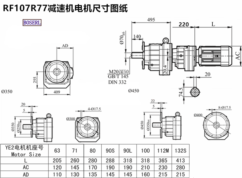 | 齒輪減速機 | RF108R78YE90S4 | RF108R78DR63S4 | RF108R78D80M4 |
